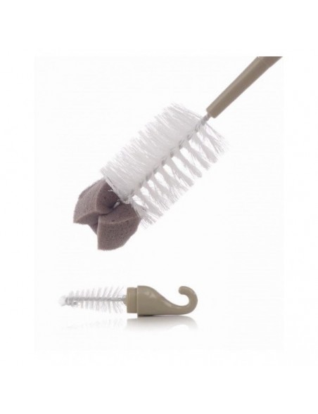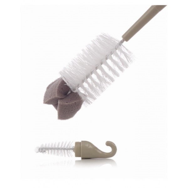 Cepillo de nylon. con esponja en el extremo. Minicepillo para tetinas. Gancho para poder colgarlo. Apto para el lavavajillas.