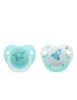 Nuestros chupetes "Soft Nordic", vienen en divertidos packs de 2 unidades con distintos diseños. Hemos dado a los escudos y anillas cantos redondeados y suaves, para mayor comodidad del bebé, así como algunas perforaciones para reducir la irritación de la carita. Todas nuestras tetinas son 100% silicona de alta calidad, suaves, flexibles, y pensadas especialmente para eliminar interferencias en el desarrollo bucal del niño. La silicona ofrece numerosas ventajas: no absorben olores ni sabores y su forma y textura se mantienen inalteradas con el uso y el contacto con otras sustancias. Son más resistentes a las altas temperaturas por lo que resultan aptas para limpieza en lavavajillas y esterilizador. Tienen forma ortodóntica, inspirada en el pezón de la madre durante la lactancia. Se adapta de manera ergonómica a la cavidad bucal del bebé permitiendo una succión con mínima presión sobre el paladar, la mandíbula y los dientes, así como una posición de la lengua natural.