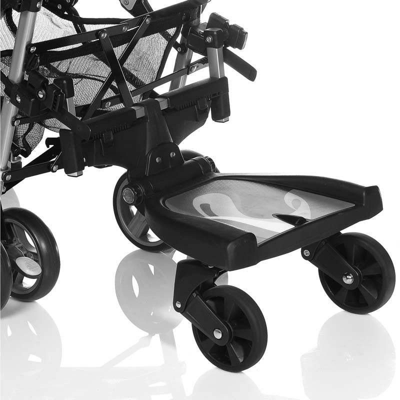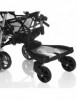 Al mismo tiempo, se puede ajustar vertical como horizontalmente. Adaptable al ancho de la silla de paseo. Ruedas con amortiguación. Varias posiciones de altura para acoplar mejor al chasis.