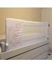 Barrera para nido o compactas, también para canapé o cama normal. Longitud de 1.80cm y 65cm de altura. La barrera más alta del mercado. Abatible y plegable. Desmontable y lavable. Color blanco con osito rosa.