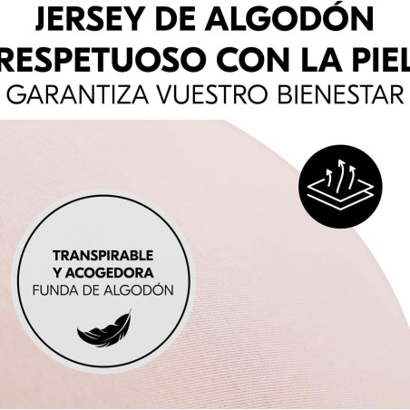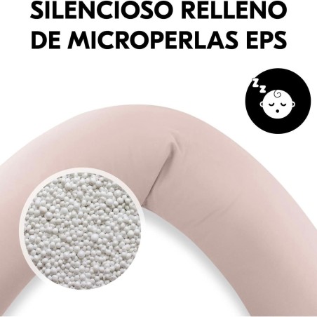 El cojín contiene microesferas finas y silenciosas en su interior. Esto lo hace muy adaptable, a la vez que ofrece a tu bebé el soporte necesario. Así, podrás encontrar la posición ideal para ambos y disfrutar de momentos de ternura con total relajación. El cojín está cubierto con una suave funda de algodón jersey. El tejido se mantiene cómodo durante todo el año y es muy delicado con la piel sensible del bebé.