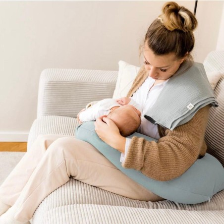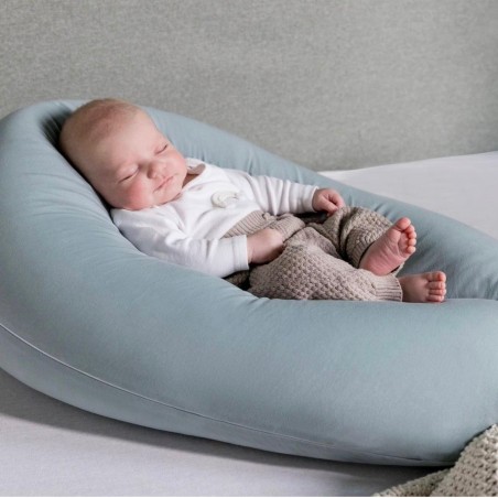 El cojín contiene microesferas finas y silenciosas en su interior. Esto lo hace muy adaptable, a la vez que ofrece a tu bebé el soporte necesario. Así, podrás encontrar la posición ideal para ambos y disfrutar de momentos de ternura con total relajación. El cojín está cubierto con una suave funda de algodón jersey. El tejido se mantiene cómodo durante todo el año y es muy delicado con la piel sensible del bebé.