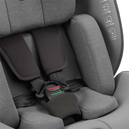 • Rotación 360°: El asiento gira completamente, lo que te permite orientar la silla hacia la puerta para colocar al niño sin posturas forzadas.