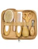 Completo neceser con todo lo necesario para el aseo del bebé en un práctico estuche con cremallera. Perfecto para viajar, ya que contiene todos los complementos de higiene necesarios. Incluye: cepillo de cerdas naturales, peine, aspirador nasal, tijeras, limas de uñas y cortaúñas. Color mostaza.