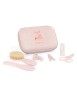 Un completo kit para casa y viajes, que incluye 6 accesorios esenciales para el cuidado e higiene de tu bebé. Podrás cuidar de su pelo con el peine y el suave cepillo. Córtale las uñas con las tijeras, el corta uñas y limárselas después. Lavarle los dientes con su cepillo de silicona para bebés.