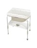 En la parte inferior dispone de una gran bandeja con compartimentos para poder colocar todo lo imprescindible de tu bebé y así tener a mano la ropita y todo lo necesario. Además, incluye una jarra de aclarado.