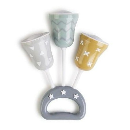 Divertido sonajero en forma de campanas o bolas que entretiene y divierte al bebé, favorece el desarrollo de la coordinación infantil y del sentido del ritmo