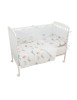 Funda nórdica de cuna que se puede utilizar durante todo el año. Y el protector evita que el bebé se pueda dar un golpe en los barrotes o colar las piernas en los huecos.