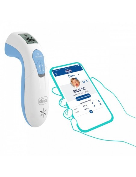 Práctico termometro frontal para saber la temperatura de nuestro bebé en 1 segundo. También podemos hace mediciones de comida y líquidos. Disponible App donde guardar nuestras mediciones.