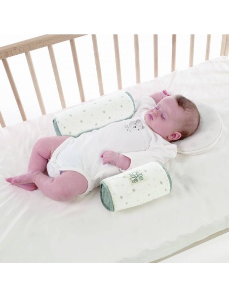 Cojín suave que potencia la correcta posición dorsal, evitando que el bebé se dé la vuelta cuando está tumbado.