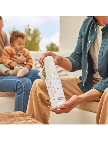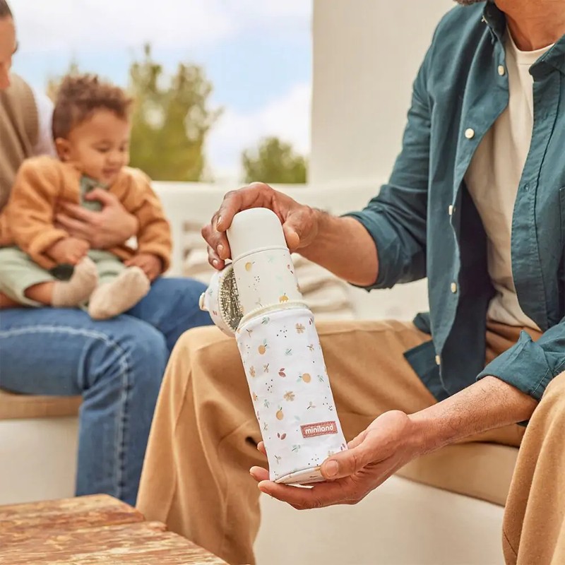 Una Bolsa isotérmica diseñada para termos de líquidos, botellas o biberones de 350 ml, perfecta para prolongar durante más tiempo la temperatura del agua o los alimentos del bebé en su interior. Gracias a su práctica asa, podrás llevarla cómodamente a cualquier lugar, especialmente durante los paseos con tu bebé. Esta bolsa no solo proporciona aislamiento adicional para preservar la temperatura óptima del termo, sino que también asegura que tu bebé disfrute de su toma siempre a punto.
