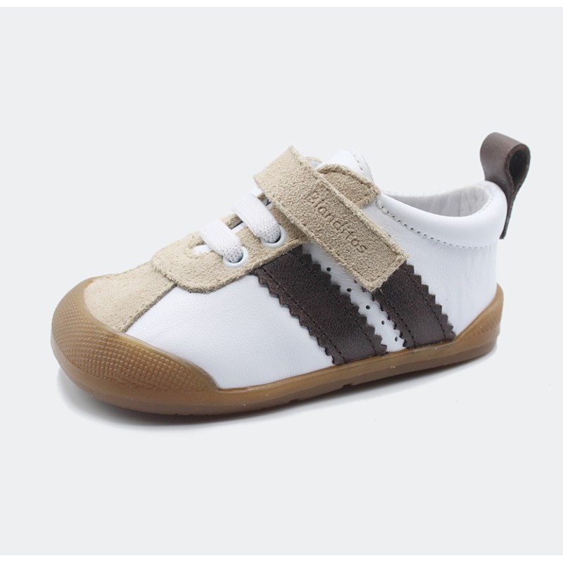 doble de cierre de velcro y suela de goma antideslizante en color caramelo. Plantilla en piel extraíble.
